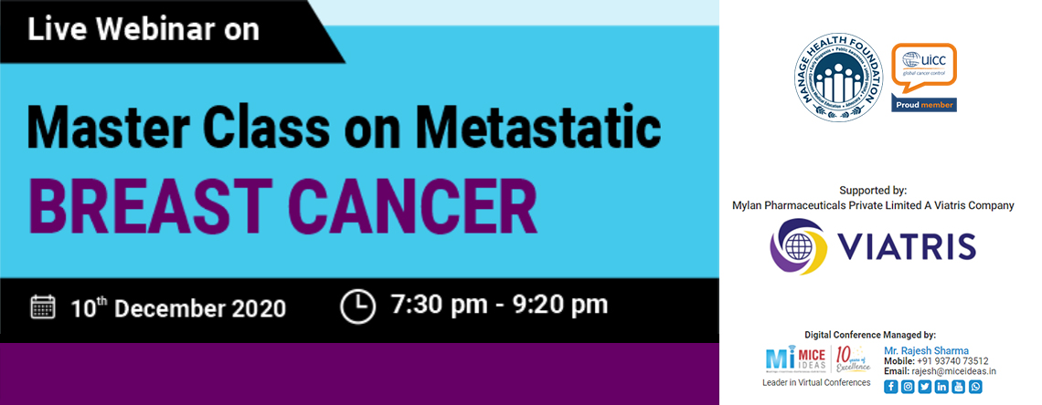 We are pleased to invite you to participate in the two days "International Master Class in Breast Cancer" is organized on 16th October and 23rd October 2021 ie two alternate Saturdays from 5.30 to 7.30 PM (India timing).